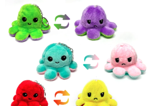 Reversible Mood Plush Octopus Keyring — flips between two moods, perfect to clip on the backpack